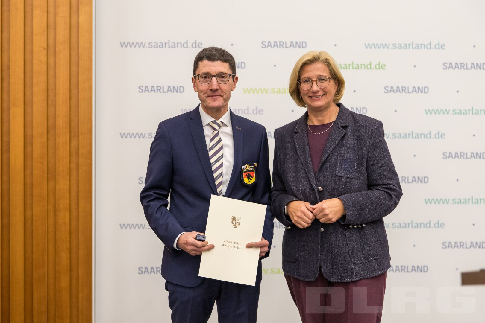 Am Abend des 29. Oktober verlieh die Staatskanzlei des Saarlandes die diesjährigen Ehrenamtsnadeln. Vier unserer langjährigen Mitglieder der DLRG Merzig wurden dabei von Ministerpräsidentin Anke Rehlinger für ihr herausragendes Engagement ausgezeichnet.